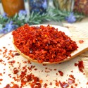 Flocons de piments rouge sans graines 3 à 5mm. Ce piment fort et fruité est classé 6/10 (10 000 US) sur l'échelle de Scoville (Ardent). Il permettra d'assaisonner toutes vos recettes espagnoles ou mexicaines et vos grillades. Son absence de graine réduit sa force.