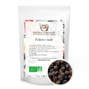 Poivre noir BIO*. Découvrez notre poivre noir bio originaire du Vietnam, reconnu pour son arôme intense et sa chaleur subtile. Cultivé en agriculture biologique dans les régions fertiles du pays, il est récolté à parfaite maturité puis séché au soleil pour préserver toute sa richesse aromatique. Ses notes boisées et légèrement fruitées subliment vos plats, des viandes grillées aux légumes rôtis, en passant par les sauces et marinades. Un poivre d’exception, 100 % naturel, pour relever votre cuisine avec authenticité et raffinement. *Issu de l'agriculture biologique.