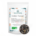 Thé golden Yunnan Bio*. Découvrez le thé Golden Yunnan, un thé noir raffiné originaire de la province chinoise du Yunnan, réputée pour produire des thés d’une grande richesse aromatique. Reconnaissable à ses belles pointes dorées, il offre une infusion ample, douce et chaleureuse, particulièrement appréciée des amateurs de thés noirs élégants. En bouche, ce thé dévoile des notes maltées, boisées et légèrement miellées, avec une texture ronde et une faible astringence. Son profil équilibré en fait un thé agréable à savourer au petit-déjeuner comme lors d’une pause plus calme dans la journée.
